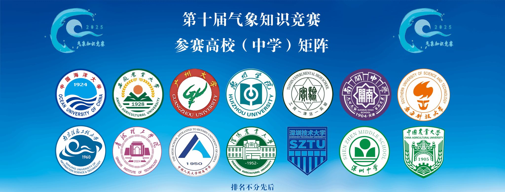 协办方:青海理工学院气象爱好者协会、安徽农业大学气象爱好者协会、广州大学学生气象爱好者协会、惠州学院云观气象环境工作室、天津高中气象联盟、南方科技大学气象社、南京信息工程大学大气科学协会、人大附中气象社、沈阳农业大学气象爱好者协会、深圳技术大学气象研究工作室、深圳中学气象社、中国农业大学气象爱好者协会。